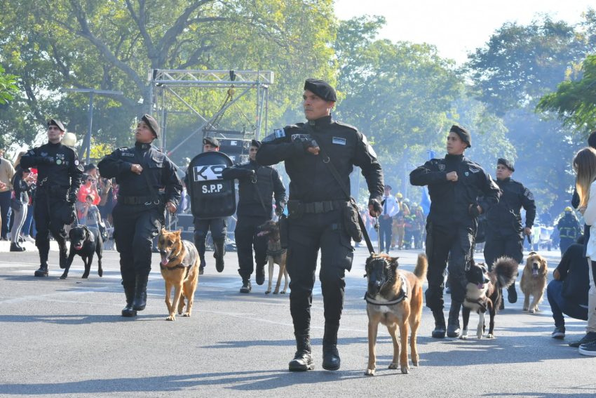 Al compás de las bandas de música de la Policía, el Servicio Penitenciario y el Ejército, desfilaron más de 2000 alumnos de 31 establecimientos educativos de la Capital, encabezados por sus abanderados y escoltas, y acompañados por sus docentes. Hicieron lo propio también fuerzas de seguridad y excombatientes de Malvinas de toda la provincia.