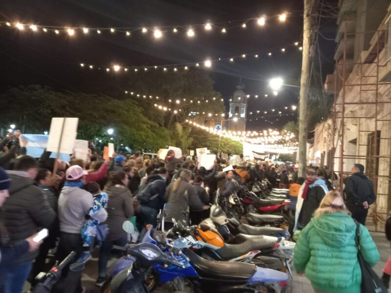 Luego, el nutrido grupo de manifestantes se trasladó hasta la residencia del Gobernador, ubicada en la intersección de avenida Costanera y calle San Martín.