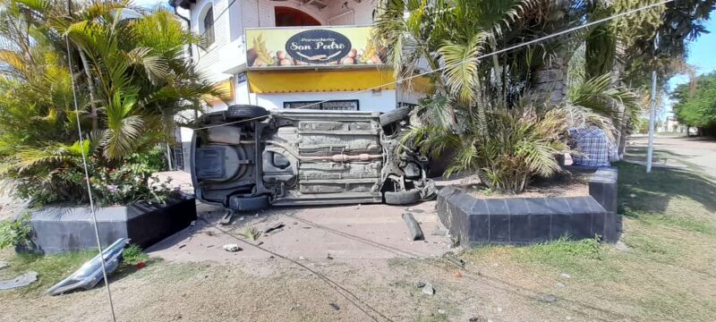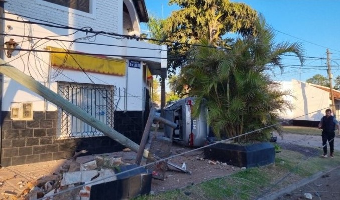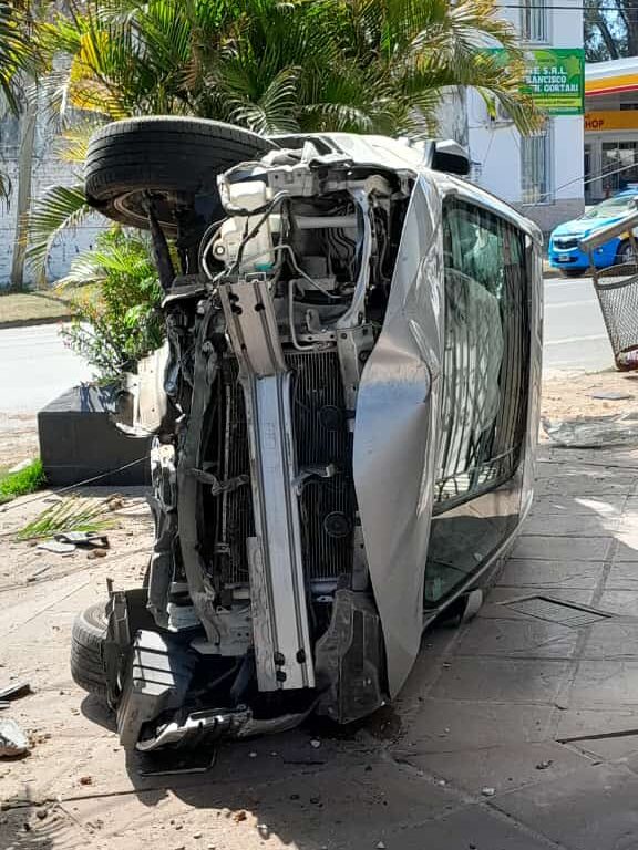 Barebena, que circulaba de Sur a Norte, perdió el control del volante. Tras despistar, impactó contra un macetero y al menos un poste del tendido eléctrico, lo que provocó un vuelco que dejó al auto sobre la vereda justo en la esquina.