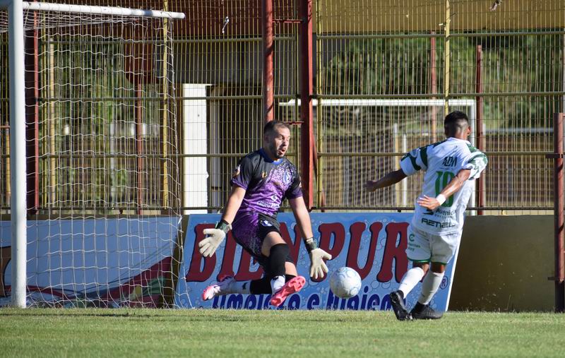 Restando cinco minutos para que se cierre el primer tiempo, Mandiyú abrió el marcador, gracias a un disparo bajo de Gonzalo Gabriel González que superó el achique de Joaquín Vallejos.