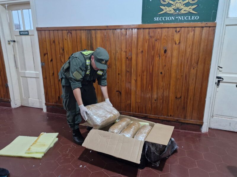 Unos gendarmes la sección Nucleo del Escuadrón 57 de Santo Tomé encontraron una carga de marihuana valuada en más de 55 millones de pesos al abrir una encomienda. Los oficiales habían incautado la caja a una empresa de transporte en Cuay Grande.
