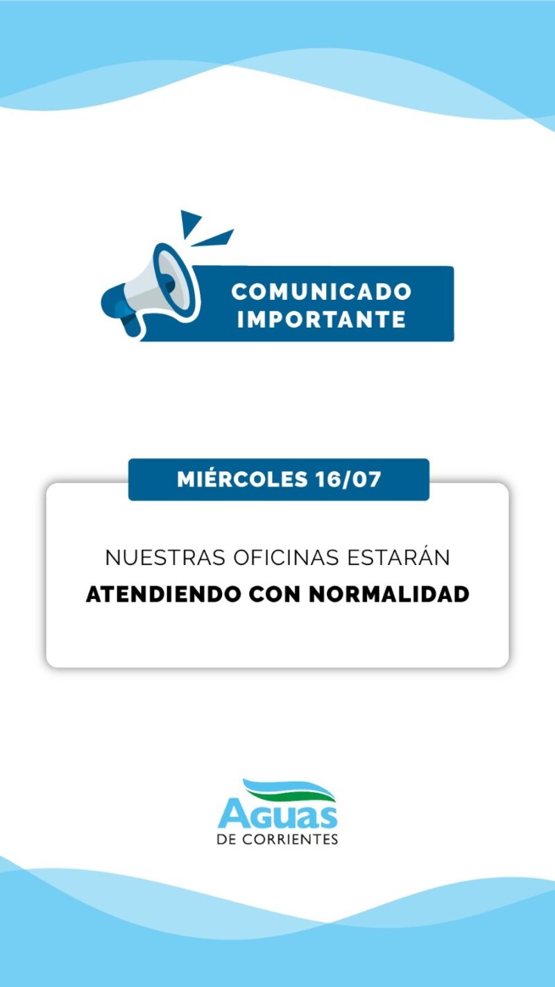 Aguas de Corrientes comunicó que mañana, en el feriado provincial por la Coronación Pontificia de la Virgen de Itatí, sus oficinas comerciales funcionarán con normalidad.