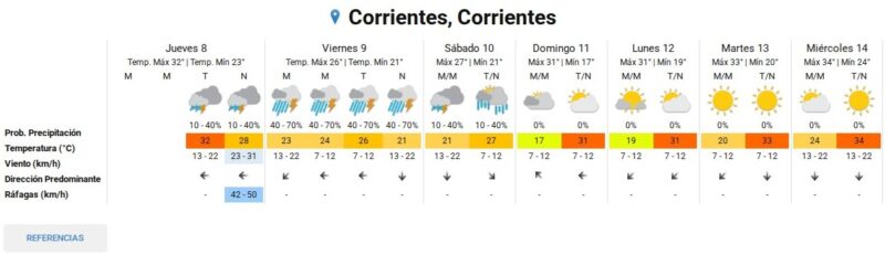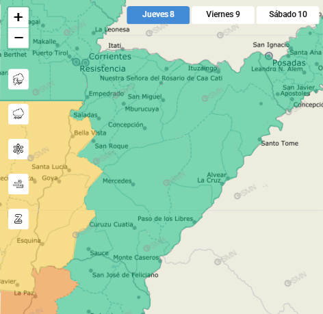 Lo que hoy comienza como un fenómeno localizado, mañana viernes 9 de enero se generalizará. El SMN extendió la alerta amarilla a todo el territorio correntino. Las condiciones previstas incluyen: actividad eléctrica, la probabilidad de ráfagas intensas que podrían alcanzar los 70 km/h; así como posible caída de granizo en zonas puntuales y abundante agua, se estiman acumulados de entre 40 y 70 mm en periodos cortos.