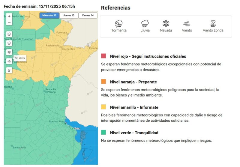 El Servicio Meteorológico Nacional (SMN) mantiene vigente el alerta amarilla por tormentas para la ciudad de Corrientes y gran parte del interior provincial durante la jornada de este miércoles.