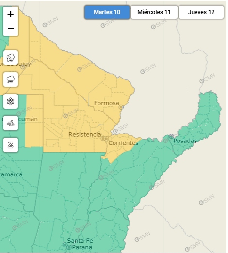 El Servicio Meteorológico Nacional emitió una alerta amarilla para Corrientes. Se espera que la provincia sea afectada por tormentas de variada intensidad, algunas localmente fuertes, especialmente durante la mañana.