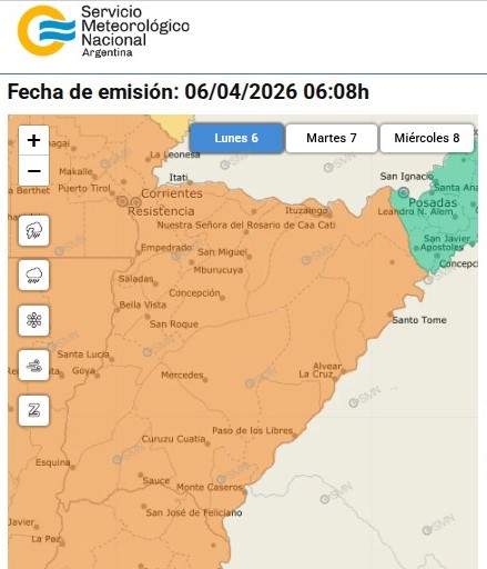 El alivio no llegará de inmediato. Para este martes, el SMN mantiene la vigilancia bajo alerta amarilla en todo el territorio correntino, con una mejora paulatina de las condiciones recién hacia la noche.