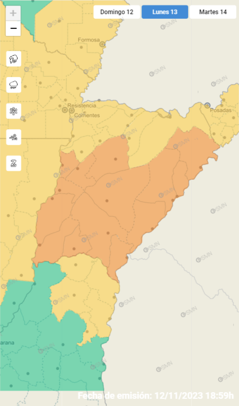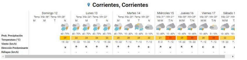 Para la Ciudad de Corrientes, el SMN informó que la temperatura para mañana rondaría entre los 22 y 24°, con probabilidades de lluvias durante toda la jornada. El tiempo inestable se mantendría durante toda la semana.
