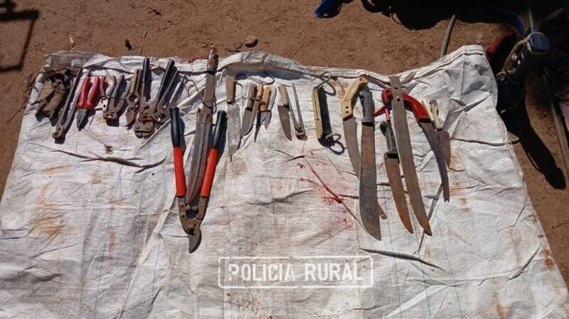 El procedimiento fue positivo: secuestraron herramientas comúnmente utilizadas para faena clandestina de animales, además de restos bovinos y rastros de sangre que comprometen al dueño de la propiedad, conocido como “Bebecho” B.