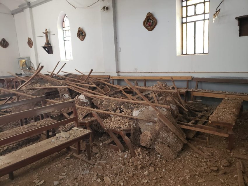 La comunidad de Alvear no sale de su asombro tras un episodio que pudo haber terminado en tragedia. Es que en la mañana de este domingo 5, se desplomó la mampostería del cielorraso del salón principal de la iglesia Inmaculada Concepción.