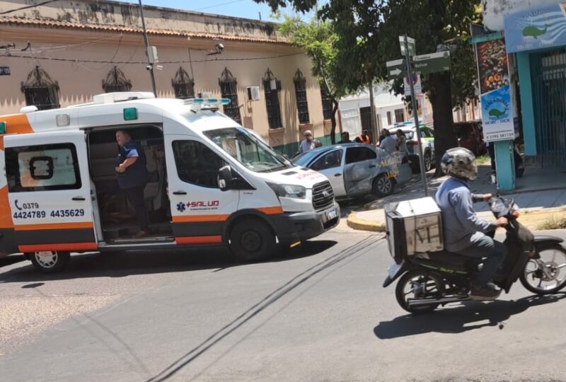 En horas del mediodía de este lunes, se registró un siniestro vial en la intersección de las calles Bolívar y San Luis, donde una ambulancia colisionó con un automóvil particular.