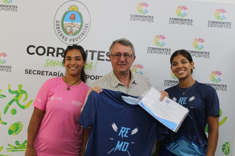El Secretario de Deportes, Jorge Terrile, recibió a las atletas correntinas Ángeles Ayala (categoría junior) y Fiorela Méndez (sub23), quienes viajarán este fin de semana a la provincia de Buenos Aires para participar en el Torneo Selectivo Nacional de Remo.