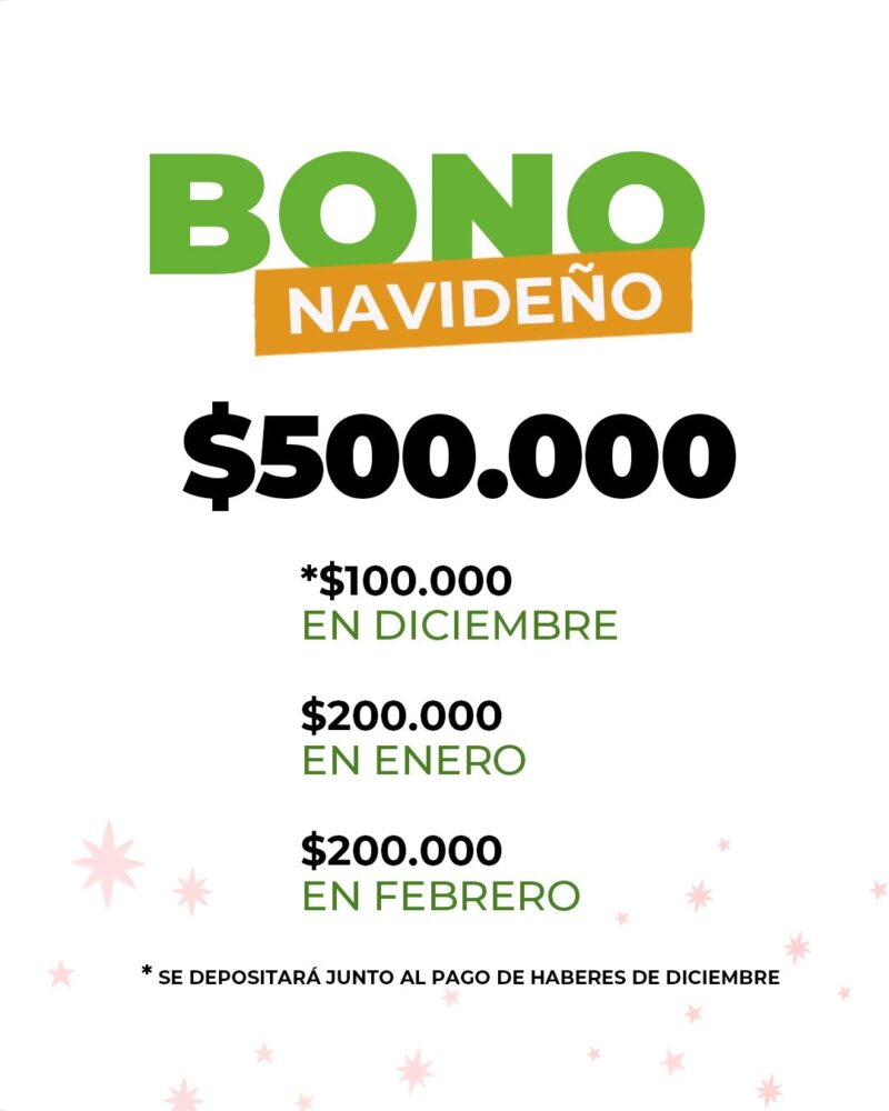 El monto total del bono será de 500.000 pesos y su implementación se realizará de manera escalonada, con el objetivo de distribuir el impacto financiero en el tiempo.