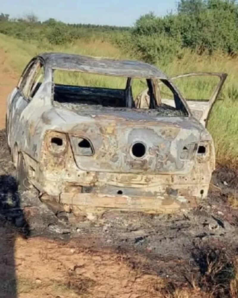 Otro detalle que no pasó desapercibido fue que el auto se encontraba estacionado en la vía pública, enfrente al domicilio del hermano del damnificado según la denuncia, con las llaves puestas. El rodado apareció a pocos kilómetros de distancia, en inmediaciones de la Ruta Nacional Nº 14, incinerado y sin rastros del armamento que había en el interior.