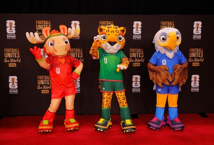Maple, Zayu y Clutch son las tres mascotas oficiales del Mundial 2026, que se disputará del 11 de junio al 19 de julio en Canadá, Estados Unidos y México. Se trata de un alce, un jaguar y un águila que simbolizan la riqueza cultural y deportiva de los países anfitriones.