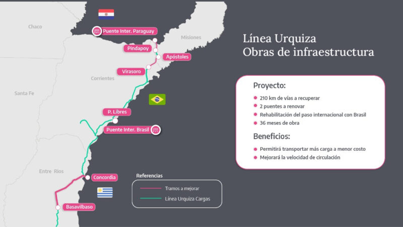 Vale recordar que estas mejoras se enmarcan en el convenio del Proyecto “Obras Prioritarias de Recuperación de Infraestructura de la Línea Urquiza» suscrito previamente entre el Ministerio de Relaciones Exteriores y el Fondo para la Convergencia Estructural del Mercosur (FOCEM) que busca aumentar la competitividad y capacidad de transporte, fortaleciendo la integración regional con la mejora de 210 kilómetros de la traza ferroviaria que recorre las provincias del litoral; y que a su vez, es la puerta de ingreso a Brasil, Uruguay y Paraguay.