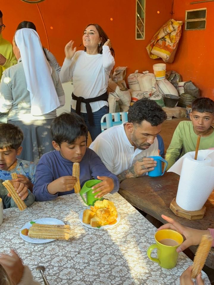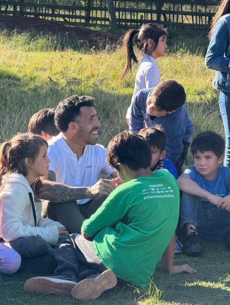 Bajo el tibio sol otoñal un puñado de niños recibió con entusiasmo a Carlitos y Vane, que a través de la Fundación Carlos Tevez, le dedicaron su tiempo y calidez a decenas de chicos.
