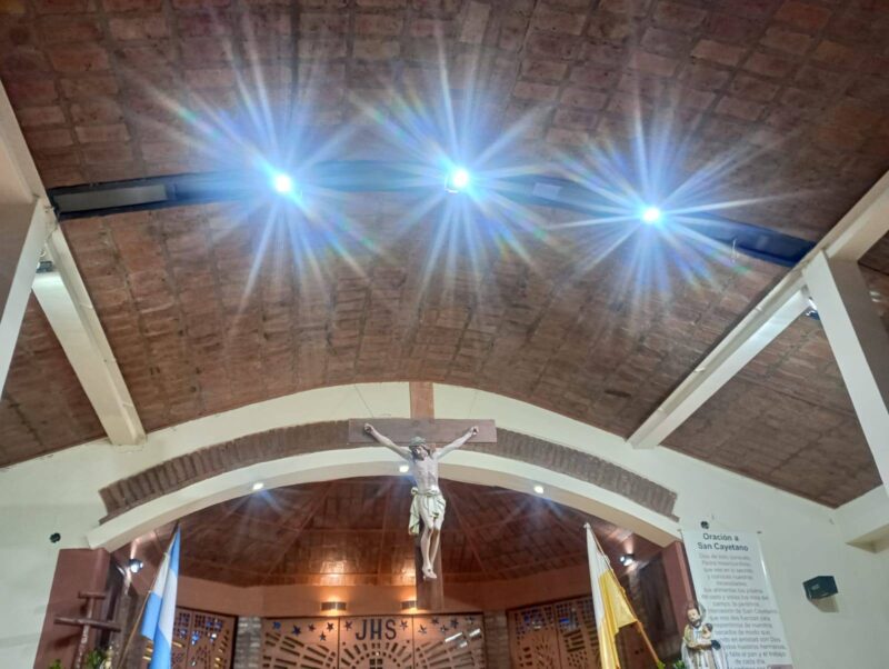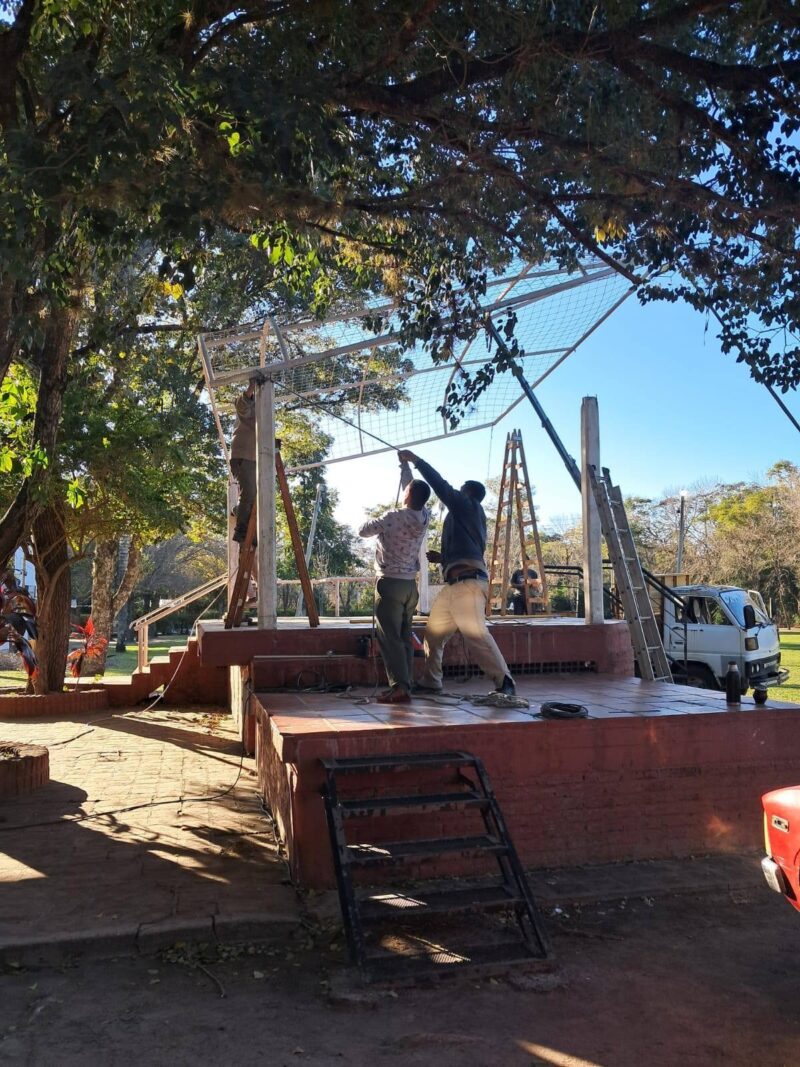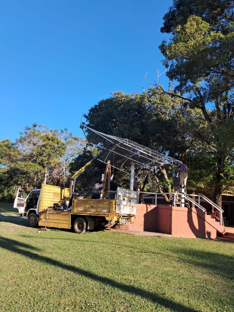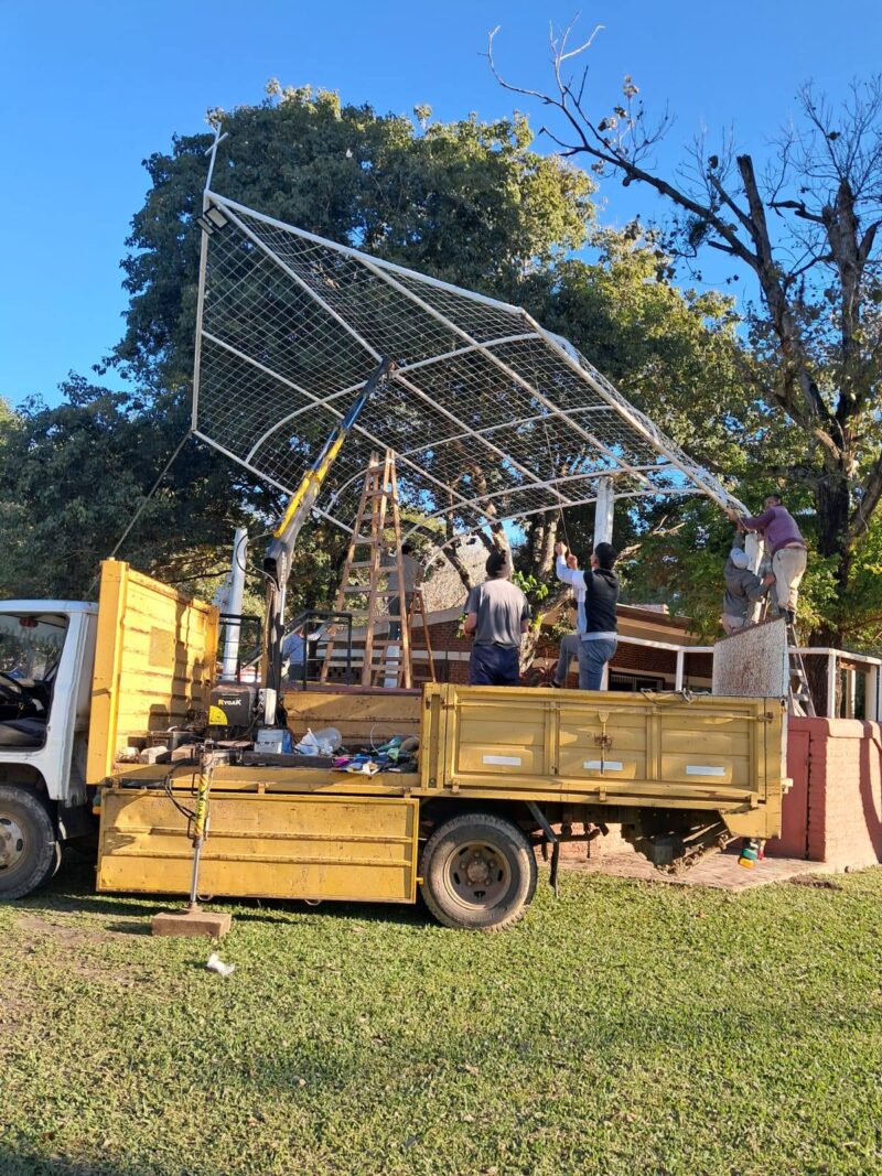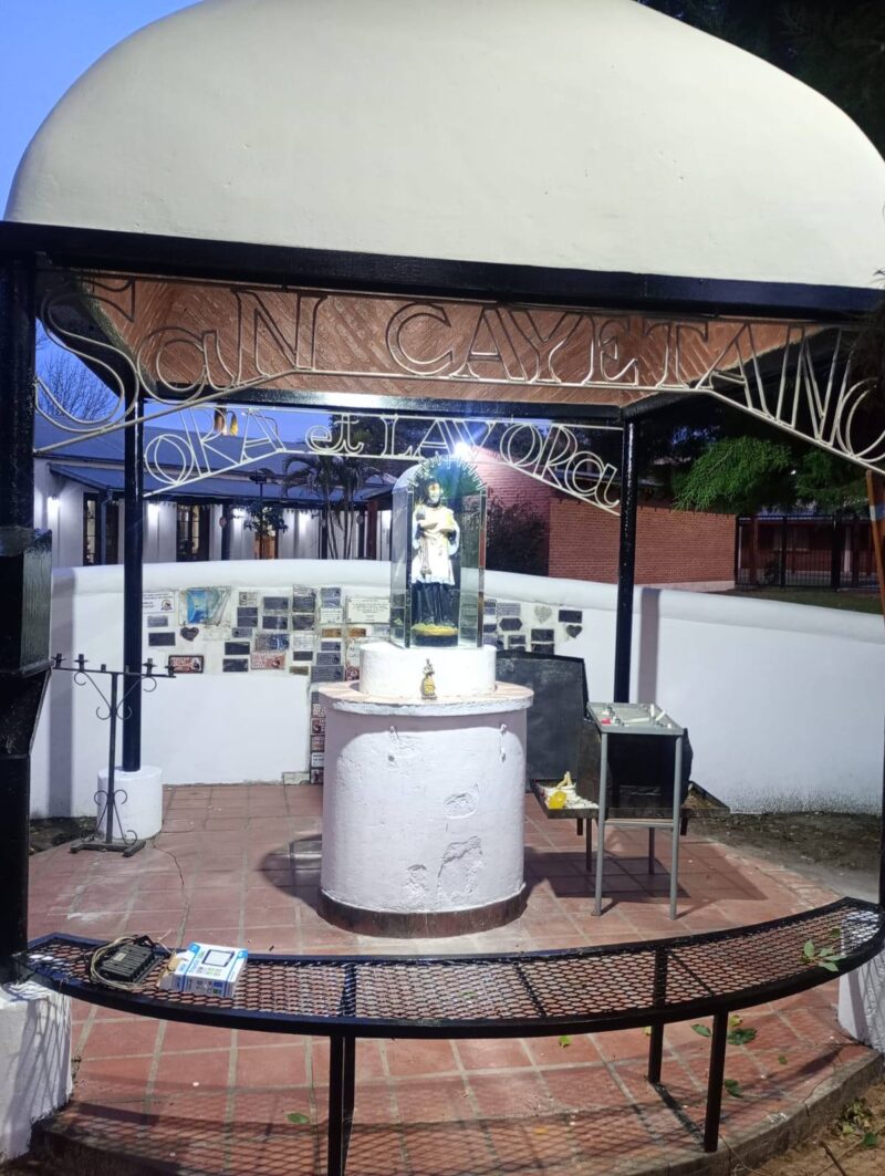 Se realizó el arreglo de la estructura y el cambio de lona del escenario del Santuario, lugar donde se desarrollarán las actividades centrales durante la Peregrinación Arquidiocesana y el día 7 de Agosto, Fiesta Patronal de San Cayetano.