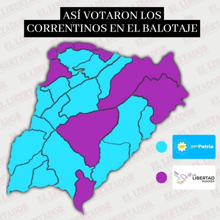 Tras conocerse la victoria en el balotaje de Javier Milei de La Libertad Avanza, EL LIBERTADOR confeccionó un mapa para conocer en detalle los resultados en cada municipio de Corrientes.