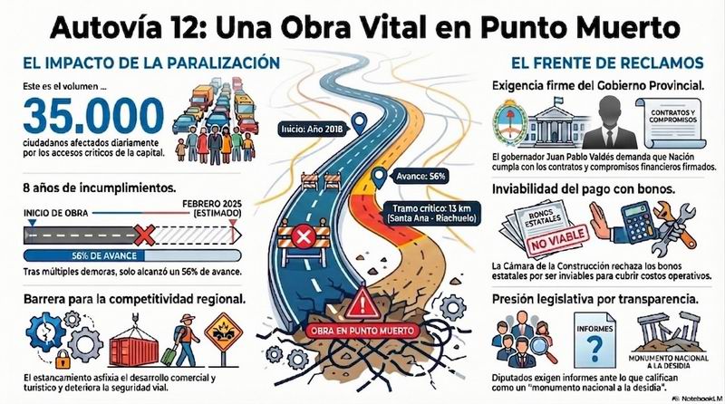 En este escenario de incertidumbre financiera, la gestión provincial, con el gobernador Juan Pablo Valdés como punta de lanza, comenzó a trazar una hoja de ruta propia para intentar rescatar proyectos esenciales, al mismo tiempo que la tensión con los organismos nacionales escala ante la falta de respuestas concretas para los miles de ciudadanos que transitan diariamente por los accesos a la Capital.
