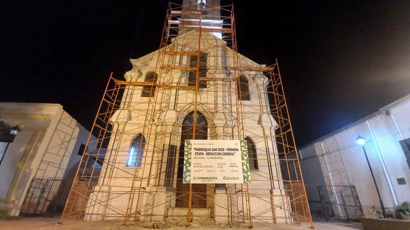 El histórico templo San José de Saladas, se encuentra nuevamente en obras de restauración. Este proyecto, a cargo del Instituto de Vivienda de Corrientes (Invico), tiene como objetivo la refacción general del edificio y cuenta con un presupuesto de 63.524.265,85 pesos.