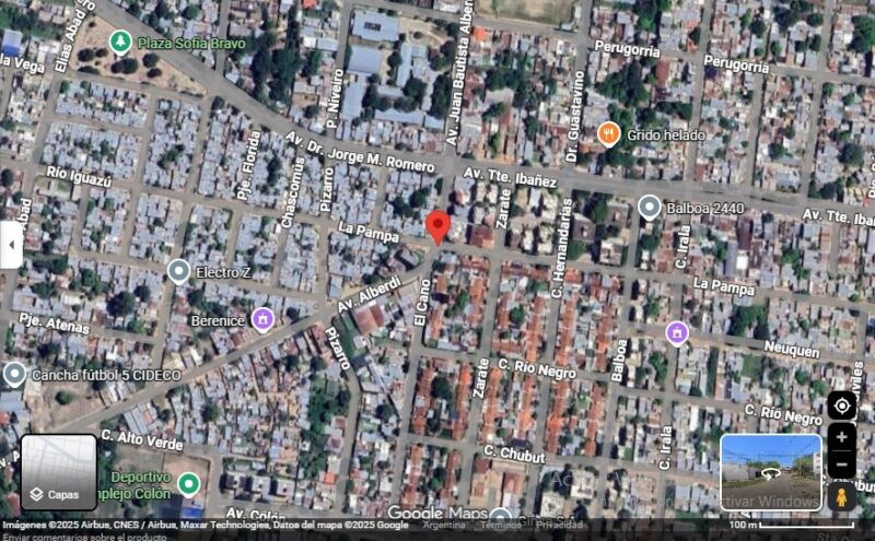 El punto crítico se encuentra en la intersección de la avenida Alberdi y calle La Pampa. De acuerdo a las imágenes y testimonios recogidos en el lugar, el daño no es superficial: el suelo debajo de la infraestructura peatonal desapareció, dejando las baldosas prácticamente suspendidas.