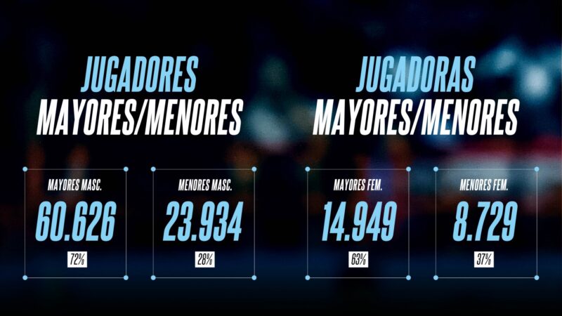 Del total de jugadores registrados, 84.560 son hombres (78%) y 23.678 son mujeres (22%), rama que incrementó su población en un 75% porque hasta diciembre de 2023 había 13.508 basquetbolistas y que volverá a tener un crecimiento exponencial en el siguiente relevamiento a partir de la inscripción de decenas de deportistas por parte de los clubes que compiten en la Liga Federal 2025. Teniendo en cuenta solo el sexo masculino, el 72% (60.626) son mayores de 12 años y el 28% restante son menores de 11 años. Entre las damas, el 63% son mayores de 12 años y el 37% restante son menores de 11 años.