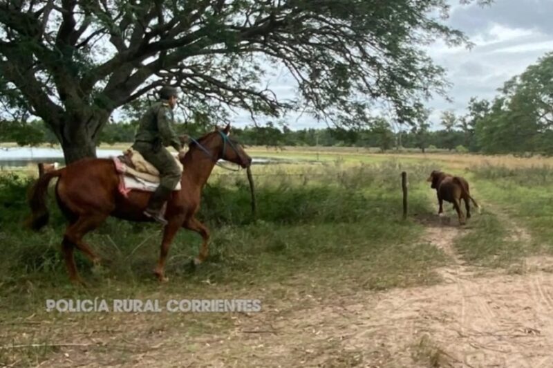Un importante ejemplar bovino fue recuperado por la Policía Rural y Ecológica de Bella Vista tras un rápido operativo en la zona rural.