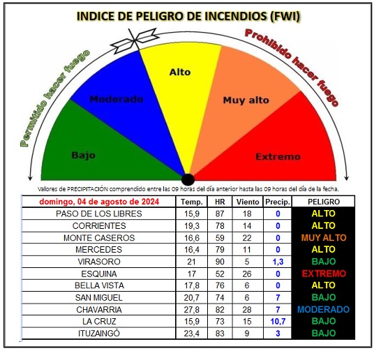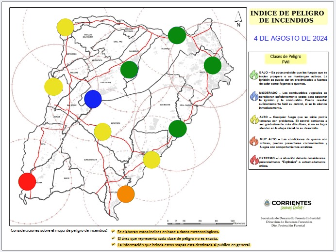 La llegada de las lluvias al territorio provincial, el fin de semana, provocó que se extinguieran más de 60 focos de incendios. Las zonas más afectadas fueron Campo General Avalos, en Monte Caseros; Concepción, Santa Rosa, San Lorenzo, entre otros sectores. El departamento de Esquina continúa con alerta extrema según el índice de peligro de incendios, mientras que en Paso de los Libres, Monte Caseros, Mercedes y la capital el riesgo es alto.