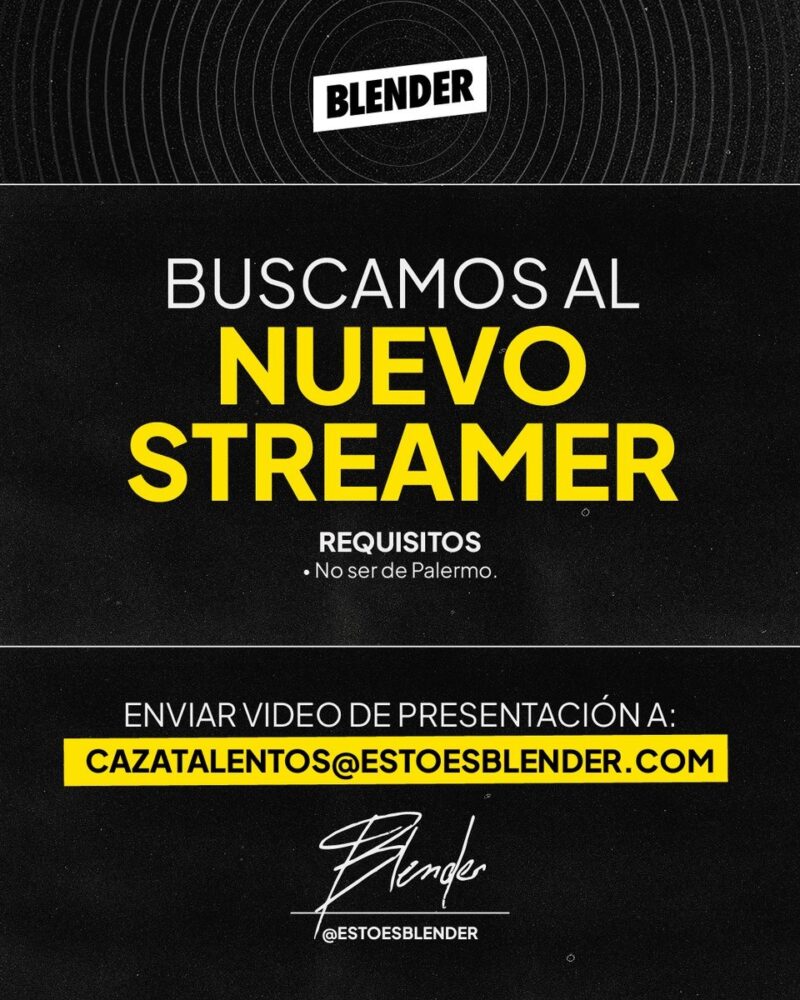 Blender, el medio argentino que redefine el streaming con figuras como Tomás Rebord y Guillermo Aquino, acaba de lanzar una búsqueda abierta para encontrar a su próximo talento. Pero hay una sola condición: que no sea de Palermo.