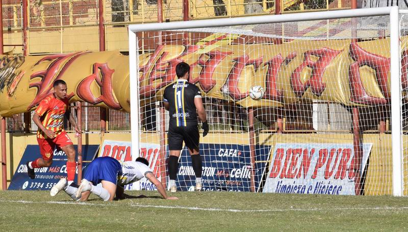 En la primera mitad, en acciones no rutilantes, pero que mostraba a un «aurirrojo» más incisivo, protagonista, fue la visita que se adelantó en el marcador con una definición de otro partido, de Matías Donato que a pura repentización, metió un taco para sorprender en el achique a Ignacio Turnes, arquero que retornaba a la titularidad.
