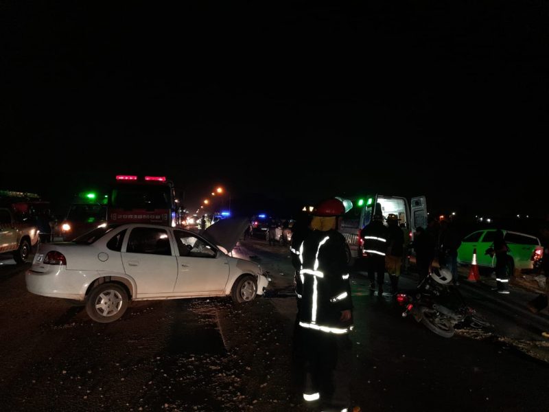 Un violento choque que involucró a dos automóviles y una motocicleta se produjo en la noche de este sábado sobre la Ruta Nacional 12, frente al aeropuerto de la ciudad de Corrientes, más precisamente en la zona de obras inconclusas de la Autovía 12.