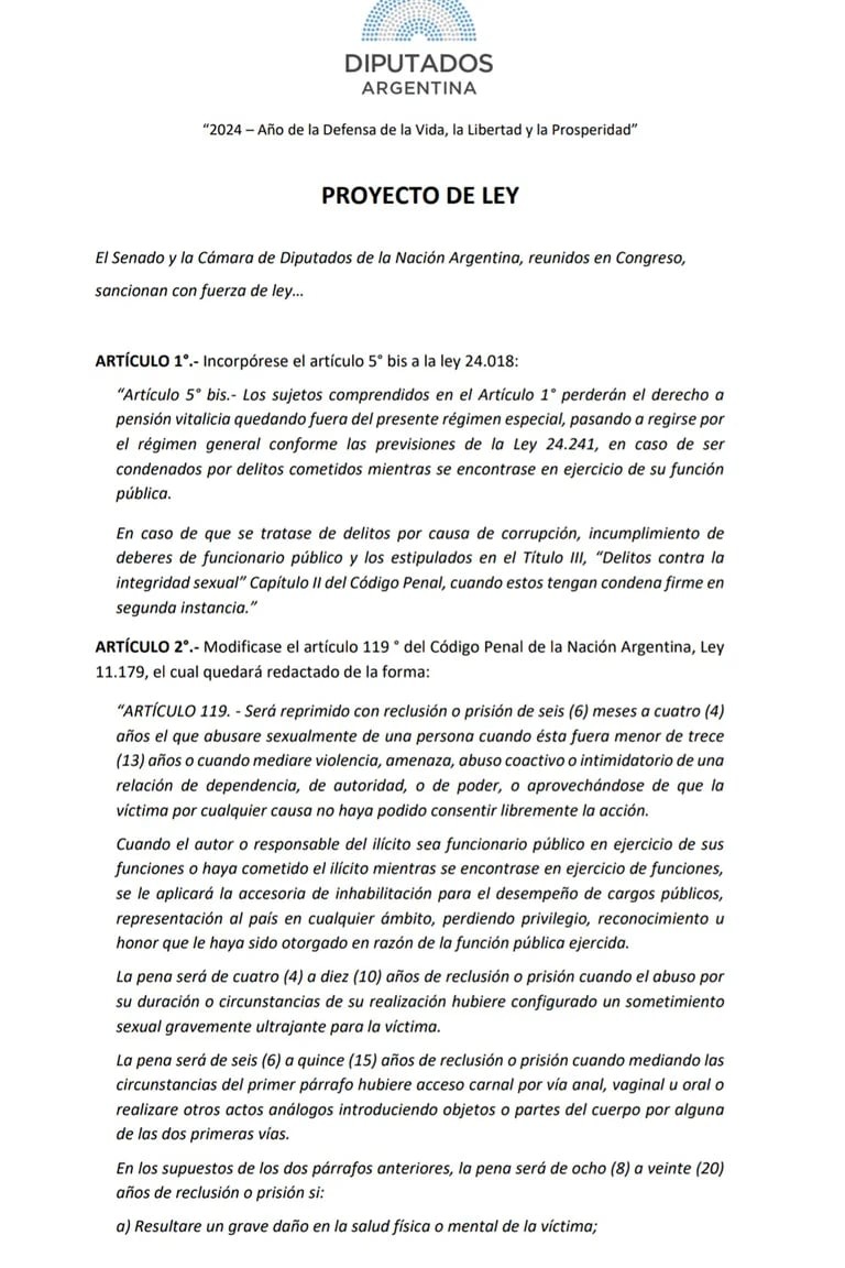 El proyecto señala que se quitarán los privilegios mencionados cuando haya condena firme en segunda instancia.