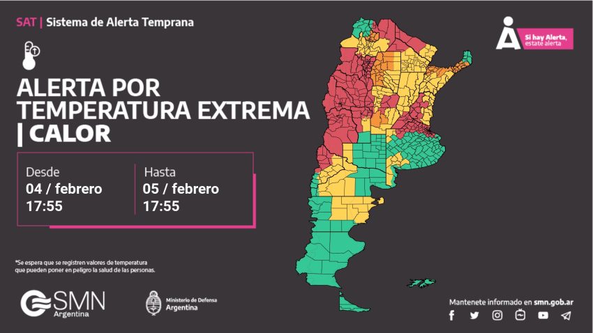 “Las temperaturas extremas pueden ser peligrosas, sobre todo para los grupos de riesgo, como niños y niñas, personas mayores de 65 años, con enfermedades crónicas”, recuerda el SMN.