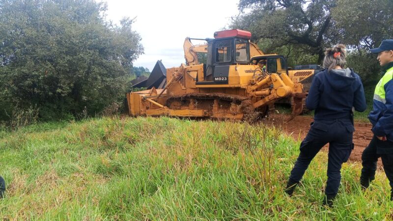 Al lugar acudieron Bomberos Voluntarios de Garaví, efectivos de la Policía local y vecinos de la zona, quienes colaboraron con maquinaria pesada para lograr el rescate del vehículo de gran porte. Las tareas se extendieron por varias horas debido a la complejidad de la situación. Hasta el momento, no se pudo establecer cómo el camión ingresó a este camino vecinal.