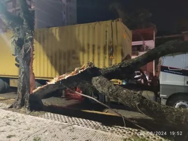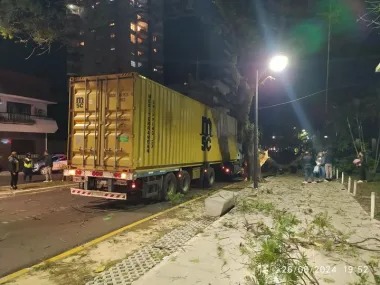 Un camión que transportaba un container causó destrozos a un árbol y complicaciones en el tráfico en torno al Puerto de Corrientes.