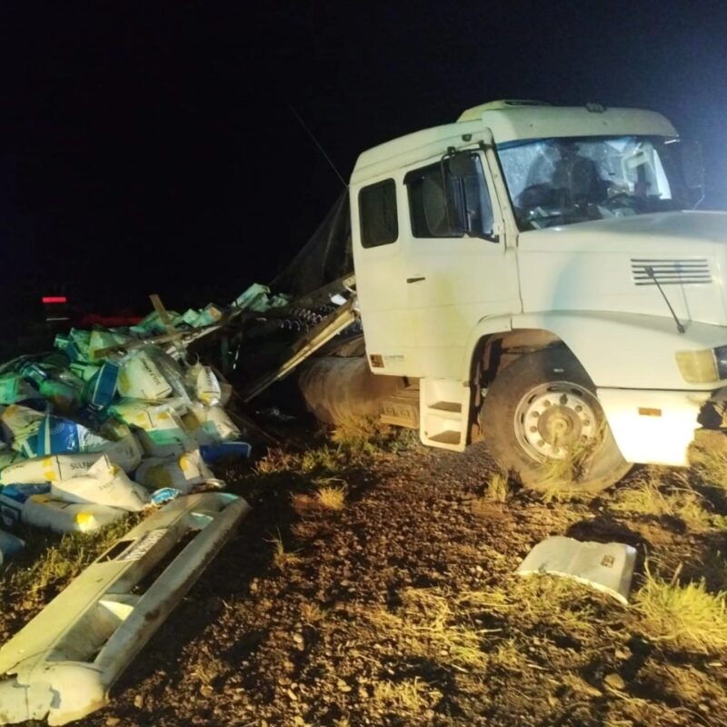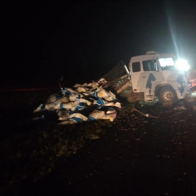 Un camión de transporte de origen brasileño se despistó en la madrugada, sobre la Ruta Nacional 14, a la altura del kilómetro 385, volcando la mercadería que transportaba.