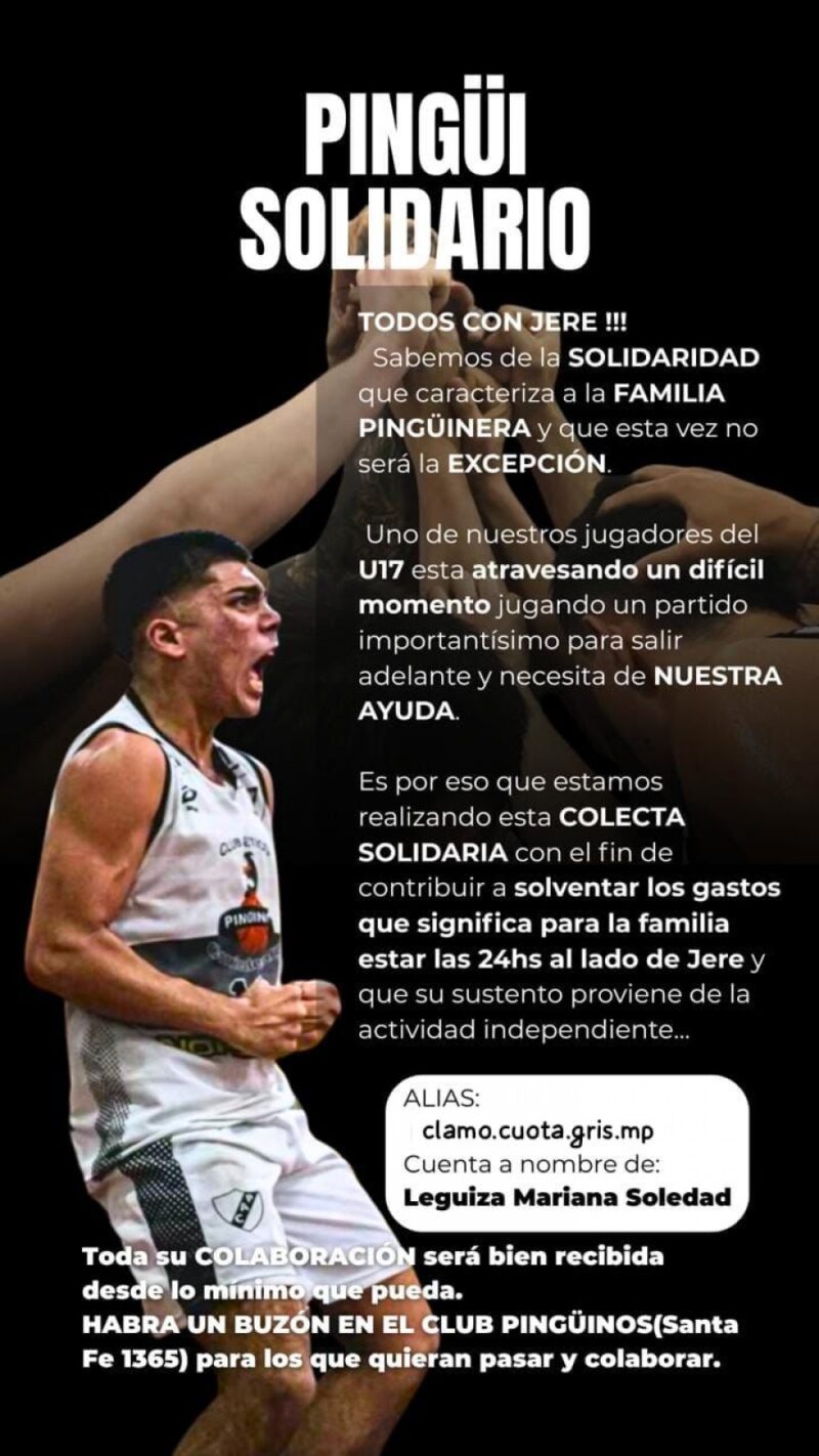 Debido al cuadro que afronta Jeremías, desde el Club Atlético Pingüinos llevan adelante una colecta solidaria para colaborar con los gastos de la familia, que se encuentra en vigilia permanente en el Hospital, a la espera de su evolución