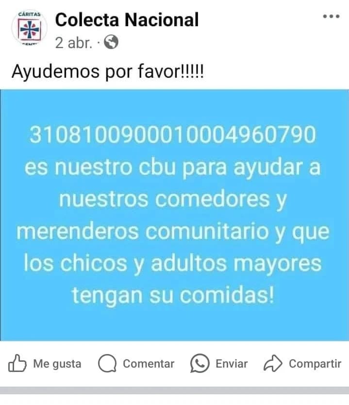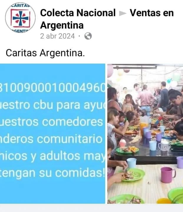 Según el comunicado oficial, estas cuentas no están vinculadas a Cáritas Corrientes y su objetivo es engañar a personas de buena voluntad que desean colaborar con causas solidarias.