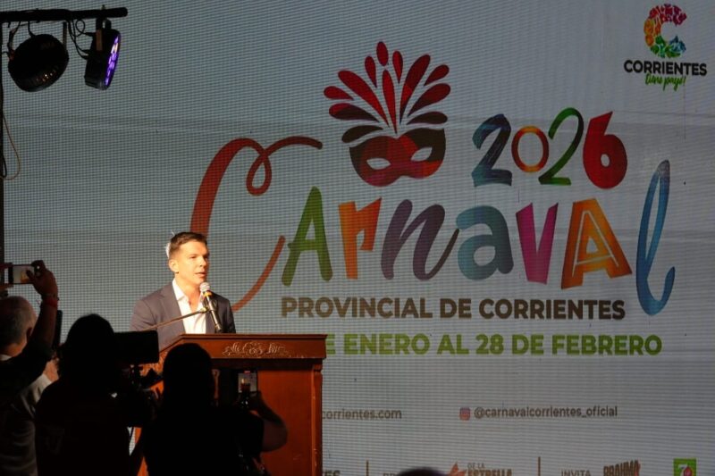 El gobernador Juan Pablo Valdés encabezó este viernes el lanzamiento oficial de la edición 2026 del Carnaval de Corrientes, que se desarrollará del 31 de enero al 28 de febrero. De esta manera, en un acto que se realizó en el predio de La Unidad, a la cual también asistieron comparseros, otras autoridades provinciales y municipales, y empresa organizadora junto al Gobierno provincial, el primer Mandatario se comprometió a continuar con las obras en el Corsódromo “Nolo Alías” e invitó a disfrutar de Corrientes de enero a febrero con “el chamamé y el carnaval”.