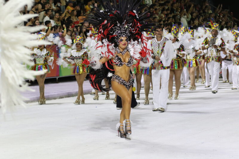 La noche contará con el esperado duelo entre las gigantes: Sapucay hará su ingreso antes de la medianoche, mientras que el cierre de la jornada estará a cargo de la legendaria Ara Berá, que pisará la pasarela a las 3 para dar el broche de oro a la velada.