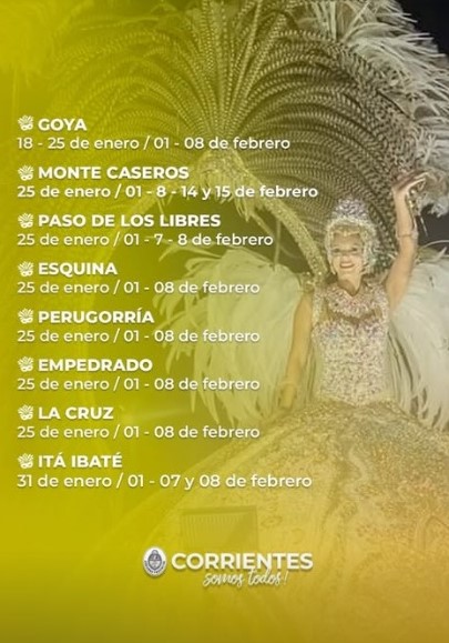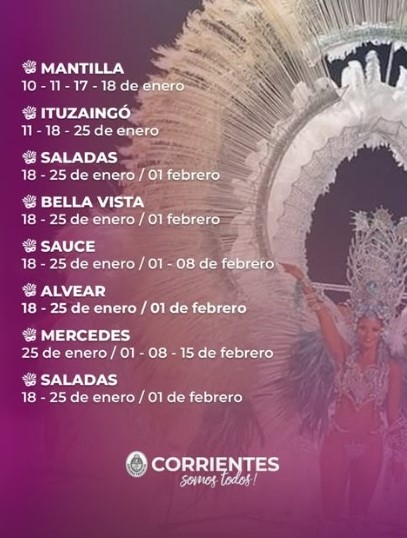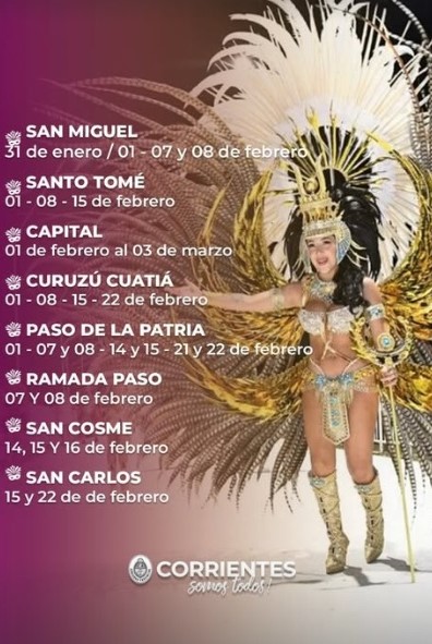 Con el slogan “Viví el carnaval en toda la provincia”, desde el Gobierno difundieron las fechas en que se desarrollará los desfiles en las localidades correntinas.