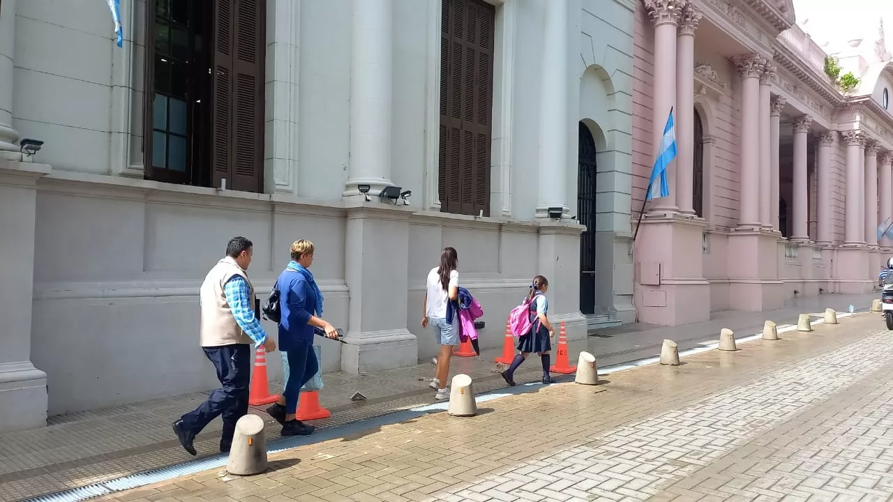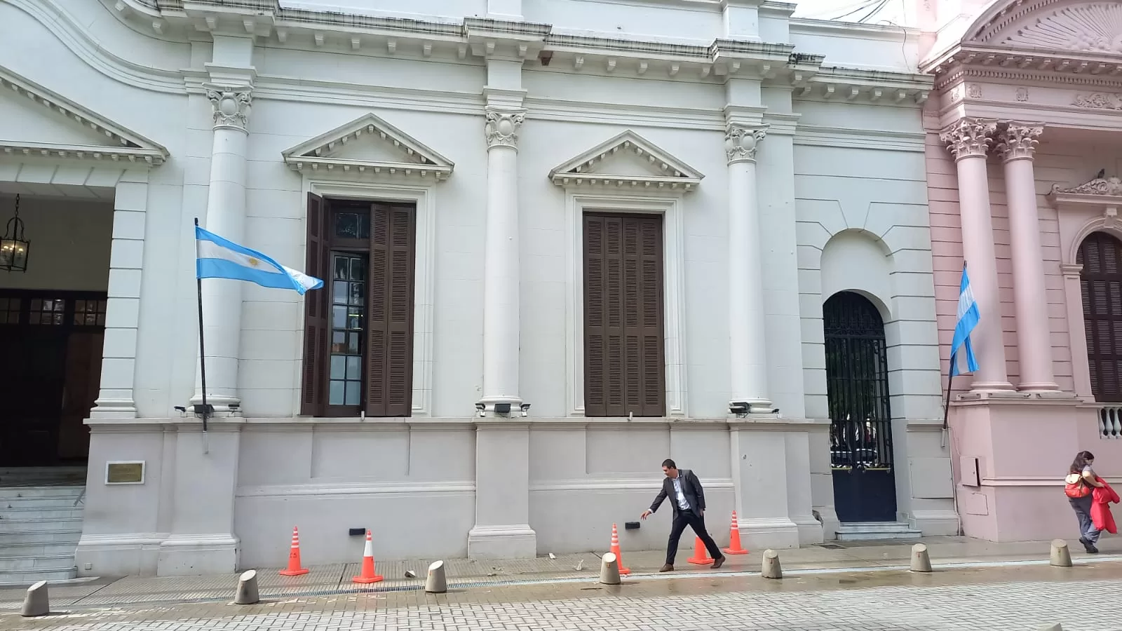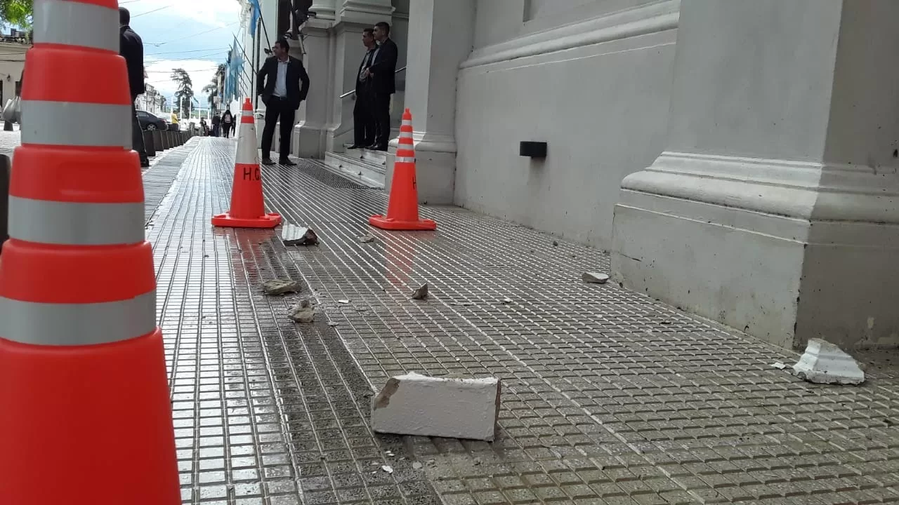 Una parte del coronamiento del edificio de la Legislatura de la provincia de Corrientes cayó en la mañana de este jueves, y corre peligro otro ornamento de la fachada. Afortunadamente no hubo heridos, sin embargo la mayoría de los transeúntes no se percata del riesgo que implica transitar por el lugar.