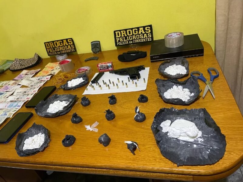 Durante el allanamiento, las autoridades incautaron una cantidad considerable de cocaína distribuida en envoltorios plásticos, una pistola Bersa calibre 22 con cartuchos, anotaciones relacionadas con la actividad ilícita, dinero en efectivo y seis teléfonos celulares. El operativo contó con el apoyo de efectivos de la División Policía de Alto Riesgo, quienes brindaron cobertura y seguridad en el lugar.