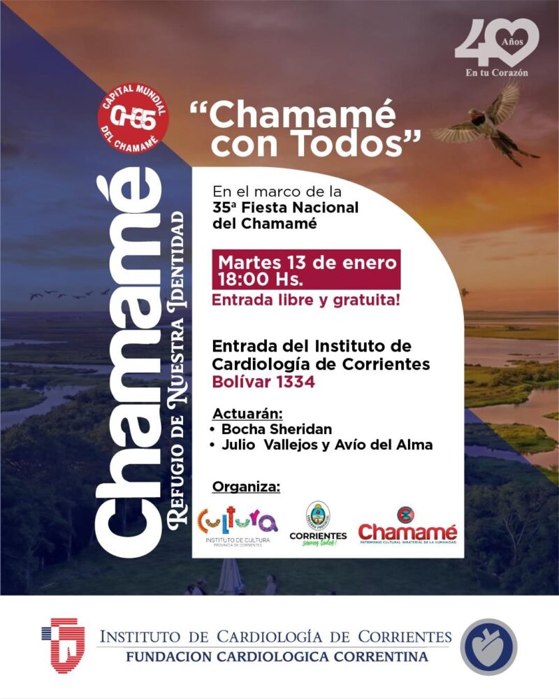 Como parte de las actividades complementarias de la 35ª Fiesta Nacional del Chamamé, el ciclo Chamamé con Todos acerca a grandes figuras a espacios públicos. El Instituto de Cardiología será el epicentro de una jornada gratuita.