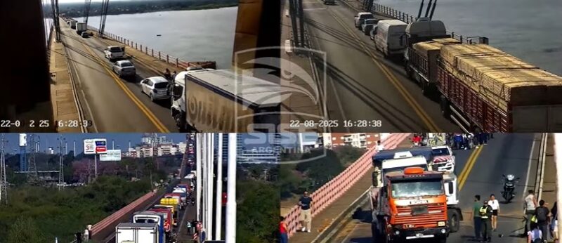 Portada » Choque entre camiones generó demoras en el puente General Belgrano