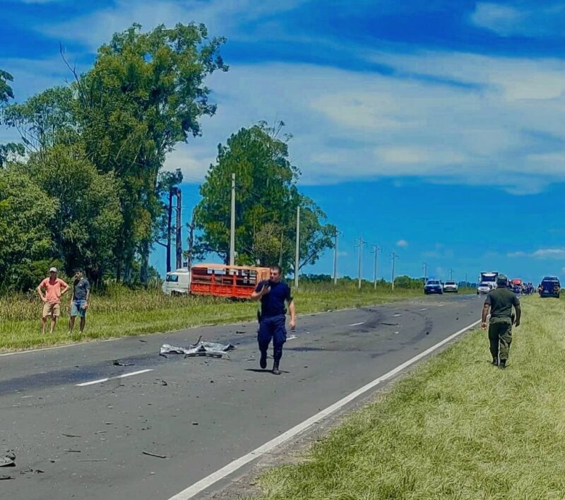 El siniestro ocurrió este mediodía en el kilómetro 901, en cercanía a la localidad de San Roque, cuando se produjo por un fuerte impacto entre una camioneta Citroën Berlingo (que viaja de Buenos Aires con destino a Paso de la Patria) y un camión Volkswagen (que viaja de Resistencia con destino a Mocoretá).