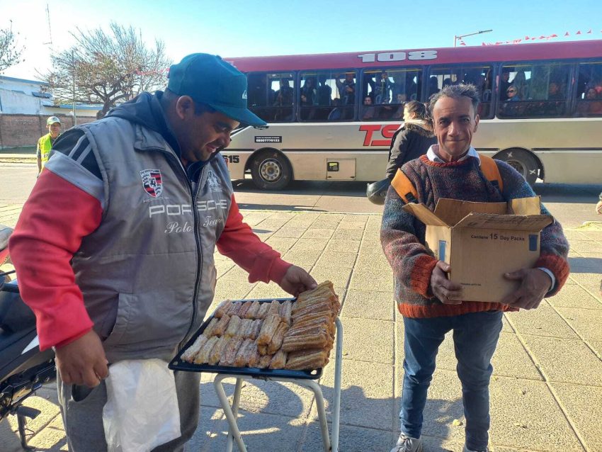 En Colegio Secundario Presidente Arturo Umberto Illia de la capital provincial, los correntinos que se acercaban a cumplir con su deber ciudadano este domingo electoral en todo el país podían servirse de dos clásicos de la comida callejera nacional: churros y garrapiñadas artesanales, ideales para esta jornada fresca.