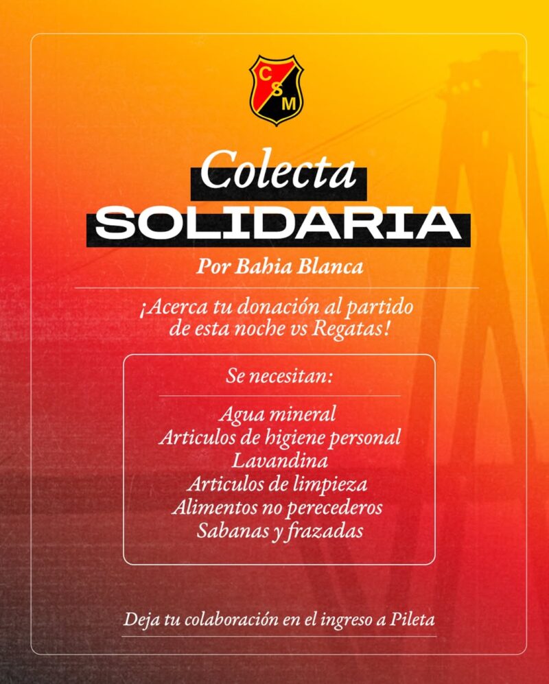 “Acerca tu donación al partido de esta noche vs Regatas, al ingreso de Pileta del Club”, detallaron.