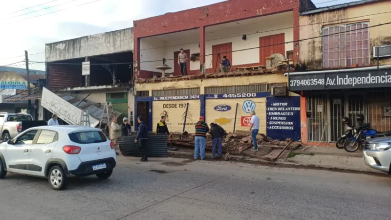 En la madrugada de este martes, colapsó una antigua estructura comercial en la ciudad de Corrientes. Alrededor de las 4 AM, una importante parte de la mampostería y dos carteles de grandes dimensiones se desplomaron sobre la vereda en la avenida Independencia al 3.400, en la banda lateral sur.