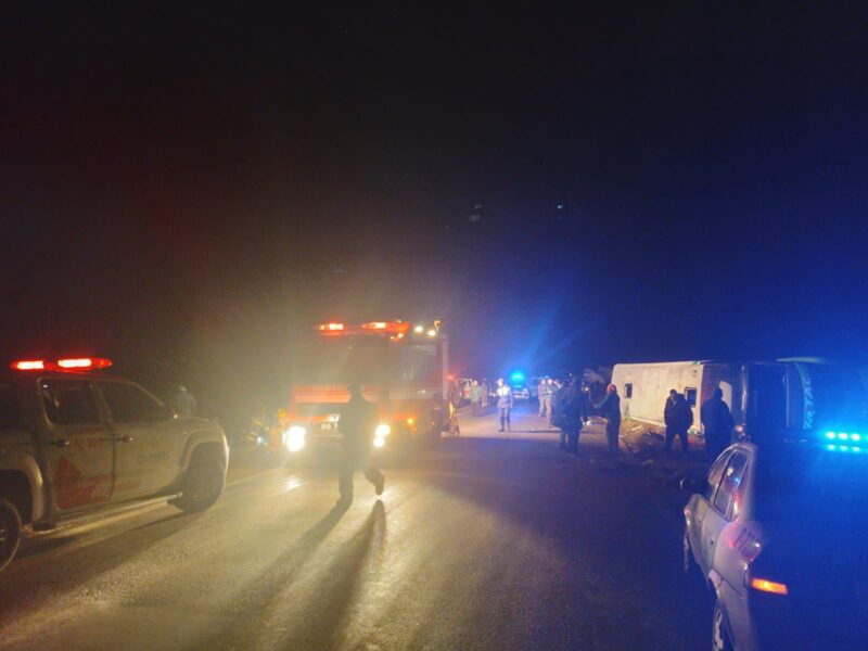 El colectivo de la empresa Vía Cargo, trasladaba a 48 personas, entre ellas dos choferes, con destino a Buenos Aires y por razones que se investigan habría despistado y volcó alrededor de las 22, a metros de la calzada, en jurisdicción de la localidad libreña de Amado Bonpland.